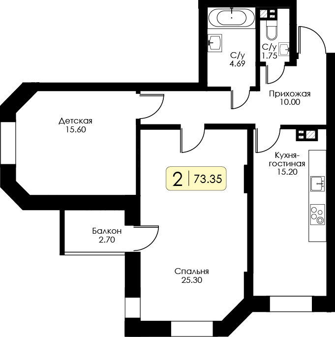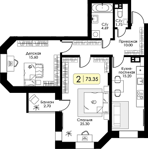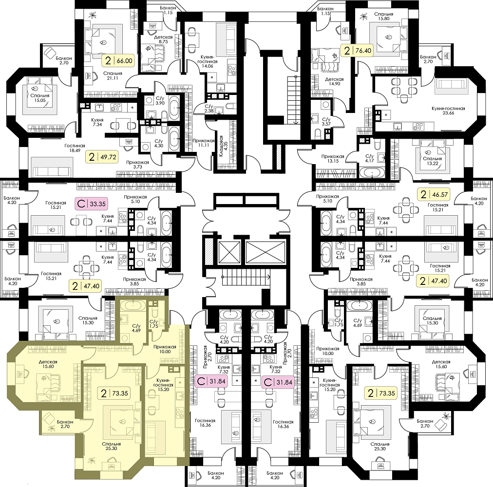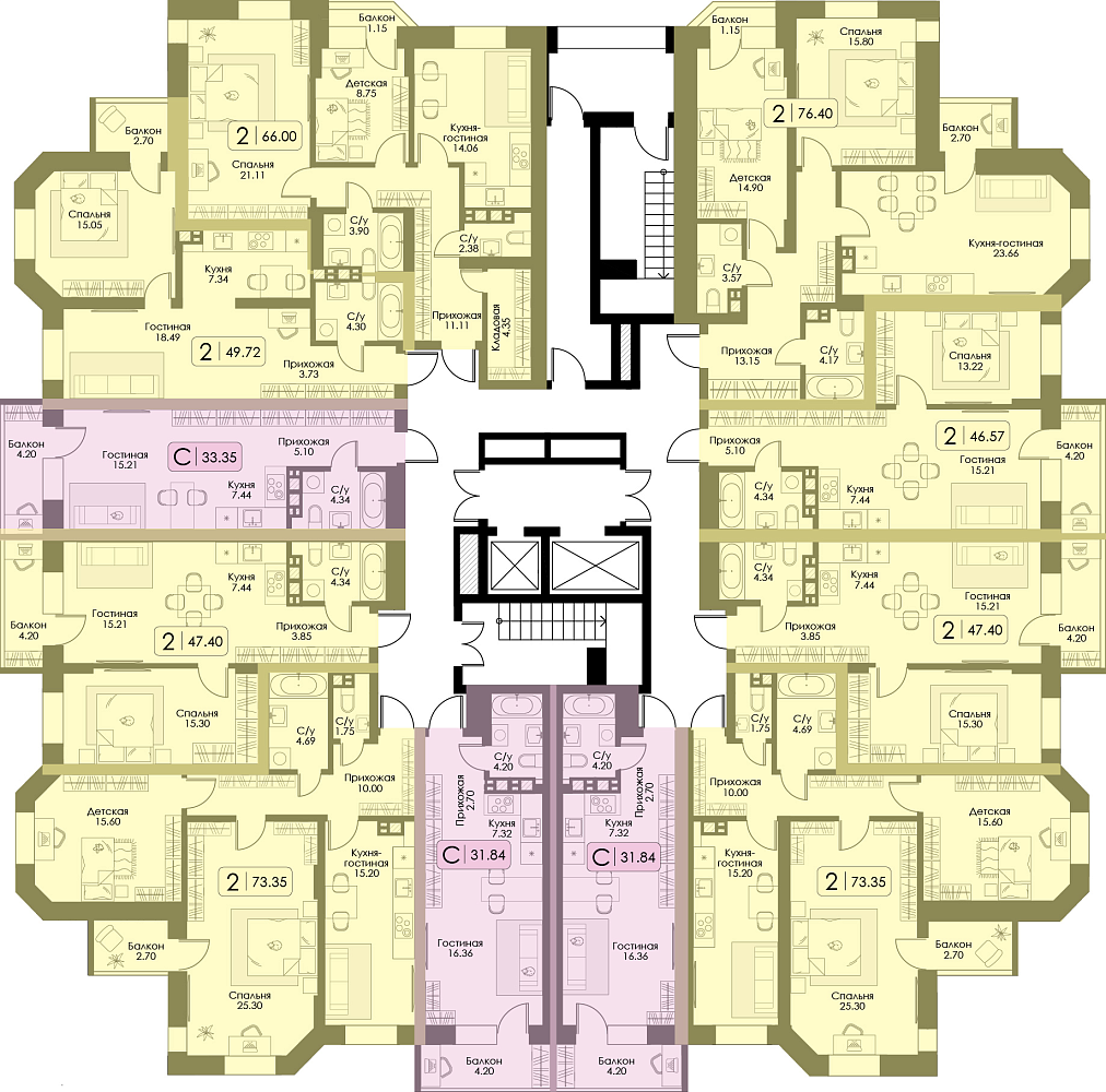 Двухкомнатная квартира №51, Корпус №12, Секция 1